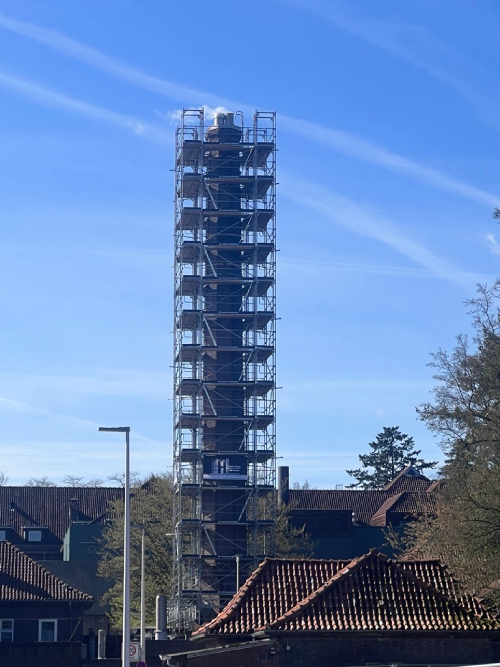 Ein weiteres spannendes Projekt erfolgreich umgesetzt: Haferkamp Gerüstbau hat den markanten Schornstein (den sogenannten Wäscheturm) des Delme Klinikums in Delmenhorst fachgerecht eingerüstet.